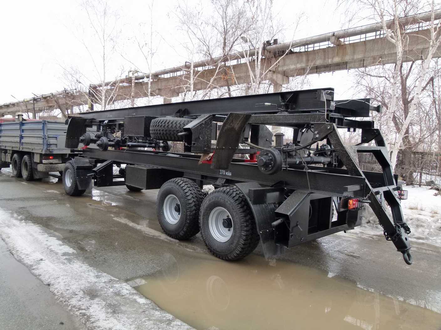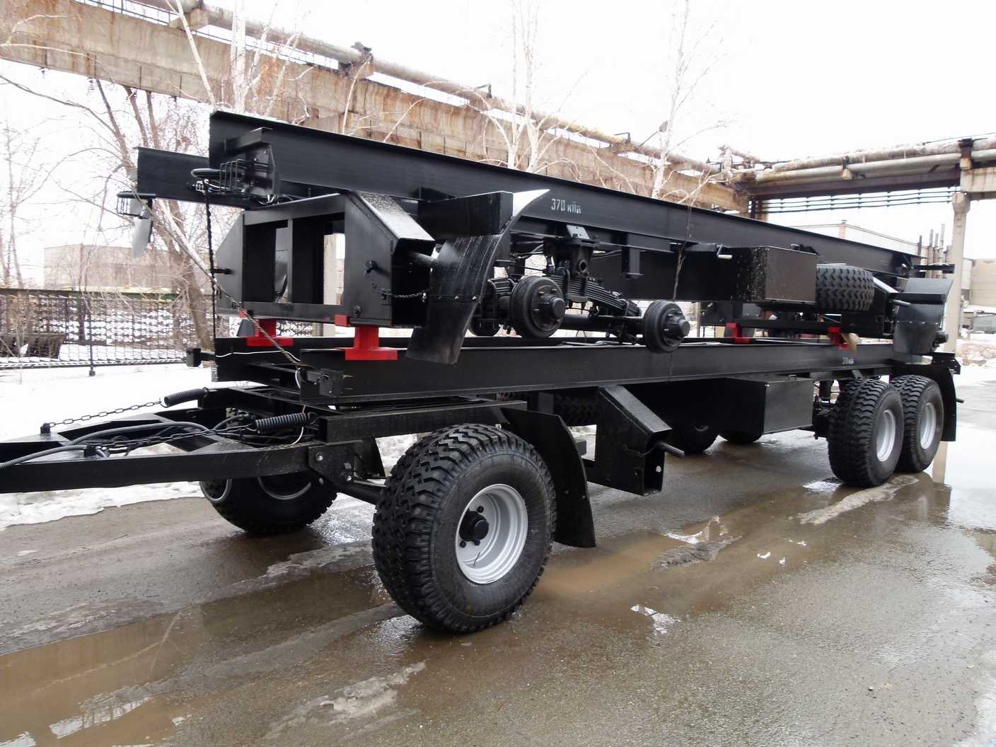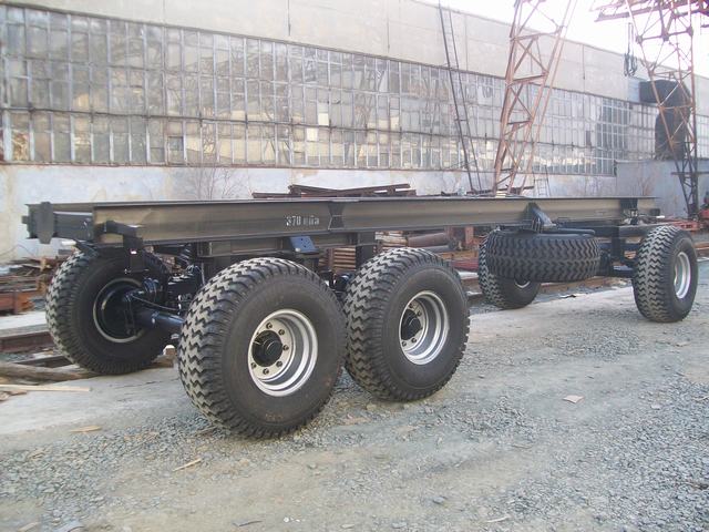 Полная масса шасси в транспортном положении 19,2 т. в стационарном положении до 60т. Шасси выполняются в различных вариантах комплектации. Возможно установить винтовые домкраты грузоподьёмностью до 60т, инструментальные ящики любых размеров, брызговики и пр.