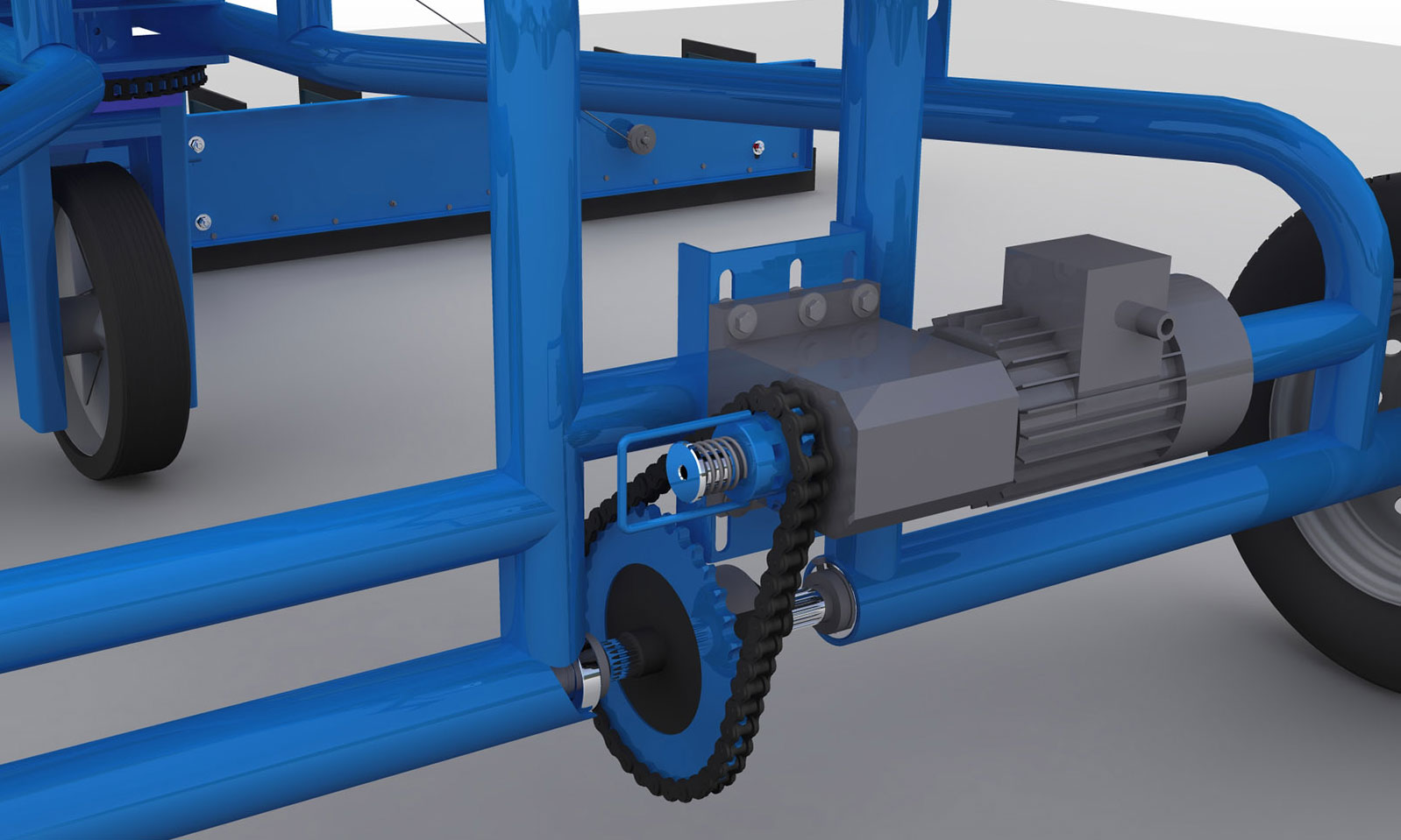 - Рама с ходом выполнена как цельносварная конструкция из холоднотянутой трубы круглого сечения 60х6.