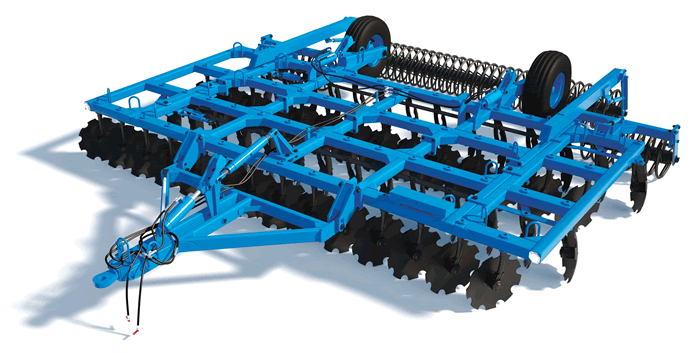 Дисковый рабочий орган с расположением подшипникового узла по выпуклой стороне диска. Способствует свободному прохождению почвенного пласта. Уменьшает тяговое сопротивление бороны, снижая расходы на ГСМ.
