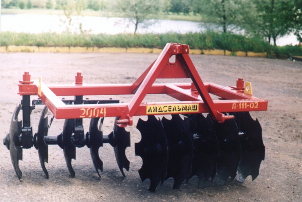 Дисковая тяжёлая борона Л-111-02 предназначена для обработки почвы на глубину 15-25 см, шириной не менее 1,5 м с измельчением кустарниковой растительности и порубочных остатков толщиной до 5 см без прокладки борозды с обеспечением крошения и менирования обработанной полосы.
