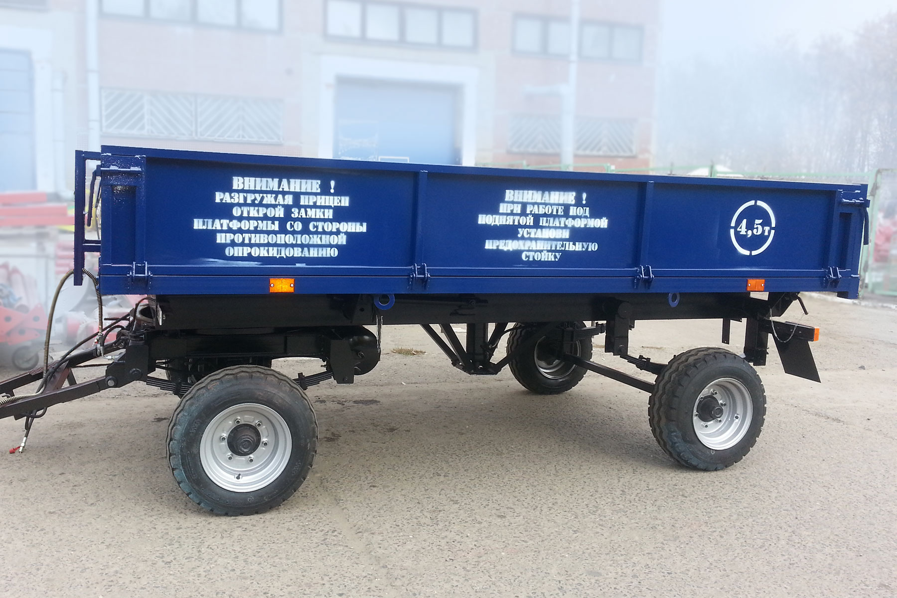Выберите оценкуGive Прицеп 2ПТС- 4,5 1/5Give Прицеп 2ПТС- 4,5 2/5Give Прицеп 2ПТС- 4,5 3/5Give Прицеп 2ПТС- 4,5 4/5Give Прицеп 2ПТС- 4,5 5/5Голосов пока нетСтавка Прицеп 2ПТС- 4,5 в комплектации в соответствие с техническим заданием Допы Технические характеристики ТТХ Масса перевозимого груза, кг, не более 4500 кг Масса прицепа с основными бортами, кг, 1950 кг Максимальная скорость движения, км/час 35 Габаритные размеры, мм, не менее: длина/ширина/высота 6 120 х 2 410(2 480 по петлям) х 1 725 Внутренние размеры платформы, мм, не менее 4 090 х 2 320х525 Погрузочная высота, мм, не более на шинах: 10,0/75-15,3 НС 14 11,5/80-15,3 НС 14(заказ) 1 050(заказ) – 1 150(стандарт) 1 200(стандарт) Толщина используемого листа борт/днище, мм 1,5/2,0 Применяемый прокатной швеллер в раме шасси/кузова, № 18/16 Применяемые оси – сечение, мм 60х60 мм. Применяемые рессоры: производитель/количество листов/нагрузка РФ/9 шт./1570 кг Объём платформы не менее -с основными бортами (630мм.), м3, не менее 4,9 -с надставными металлическими бортами Н=500мм 9,7 - с надставными сетчатыми бортами Н=1 000мм. 14,4 Угол подъёма платформы(назад,на стороны), град не менее 45 Ширина колеи, мм 1 800 Дорожный просвет без груза, мм, не менее 340(шины 10,0/75-15,3 НС 14) 360(шины 9,00-16 Я-324 НС 10) Шины 10,0/75-15,3 НС 14 9,00-16 Я-324 НС 10 Рабочая тормозная система Пневматическая с однопроводным приводом Стояночная тормозная система Механическая, с ручным приводом Трактор, тягового класса, т.с. 1,4 – 3,0 Тип тягово-сцепного устройства трактора ТСУ-2/ТСУ-2В