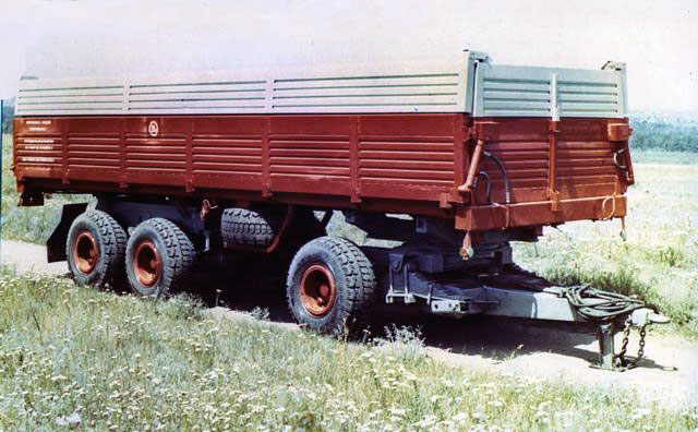 Прицеп трёхосный полунавесной грузоподъёмностью 23,3т. Исполнение передней тележки с догружающим дышлом, обеспечивает увеличенную тяговую способность тягачу. Полуприцеп оснащён фаркопом, что позволяет эксплуатировать данный полуприцеп в составе поезда, состоящего из трактора, прицепа полунавесного 23,3т, прицепа трёхосного 21,3т. Открывание и закрывание боковых бортов производится из кабины с помощью гидравлических приводов.