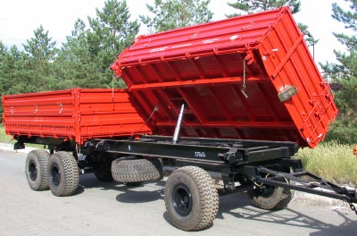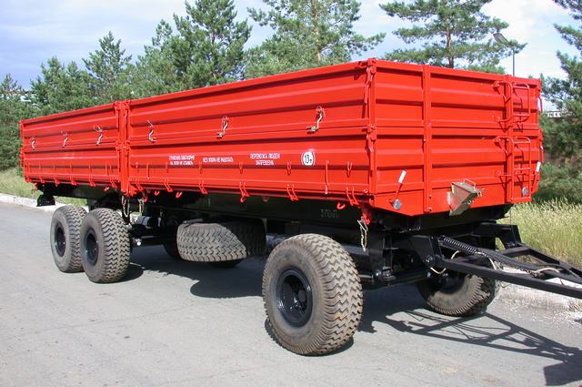 Предназначен для перевозки штучных и сыпучих грузовкак по дорогам с твердым покрытием, так и с грунтовым. Оборудован гидравлическим опрокидывающим устройством для разгрузки платформ на боковые стороны . Функциональные возможности прицепа значительно расширены благодаря наличию двух кузовов, обеспечивающих одновременную транспортировку различных грузов. Применение двухъярусной платформы со съемными надставными бортами позволяет оптимально менять объем кузова для перевозки грузов различной плотности. Съемные торцевые борта позволяют перевозить длинномерные штучные грузы длиной до 8,5 метров. Агрегатируется с колесными тракторами класса 20-30кН с мощностью двигателя от 100 кВт (140 л.с.).